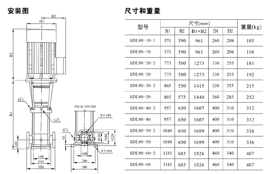 南元SDL90/SDLT90立式多級(jí)離心泵有不同的泵規(guī)格和不同級(jí)數(shù),以滿足所需的流量和壓力。