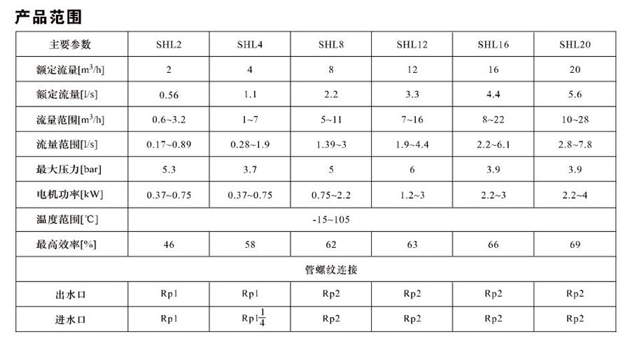 SHL/SHF/SHFT4為臥式多級非自吸多級離心泵,配加長軸電機。緊湊式結(jié)構(gòu)使泵尺寸很小,軸向入口或徑向出口。