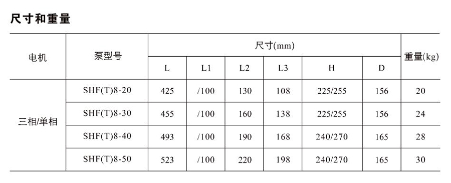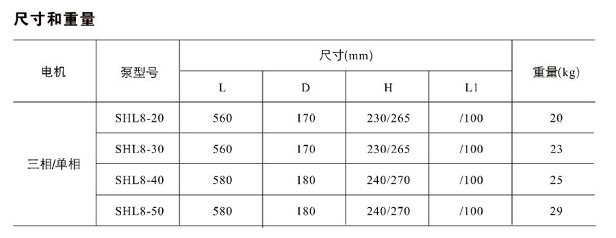 SHL/SHF/SHFT8為臥式多級非自吸多級離心泵,配加長軸電機。緊湊式結(jié)構(gòu)使泵尺寸很小,軸向入口或徑向出口。