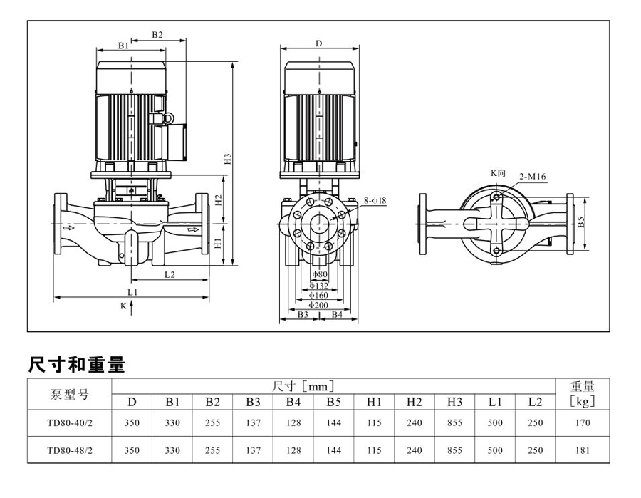TD80系列單級管道離心泵,配有標(biāo)準(zhǔn)電 機(jī)和機(jī)械密封。此類產(chǎn)品的結(jié)構(gòu)與相近類型產(chǎn)品相比,更不易受到泵送液體中雜質(zhì)的影響。產(chǎn)品設(shè)計(jì)為頂部可拉出的拆裝形式,其可 以在不影響管路系統(tǒng)的情況下對泵進(jìn)行維修。所有泵采用創(chuàng)新式便拆式機(jī)械密封,更好機(jī)械密封無需拆卸電機(jī)。