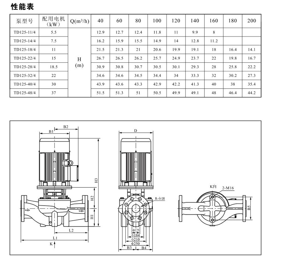 TD125系列單級(jí)管道離心泵,配有標(biāo)準(zhǔn)電機(jī)和機(jī)械密封。此類(lèi)產(chǎn)品的結(jié)構(gòu)與相近類(lèi)型產(chǎn)品相比,更不易受到泵送液體中雜質(zhì)的影響。產(chǎn)品設(shè)計(jì)為頂部可拉出的拆裝形式,其可以在不影響管路系統(tǒng)的情況下對(duì)泵進(jìn)行維修。所有泵采用創(chuàng)新式便拆式機(jī)械密封,更好機(jī)械密封無(wú)需拆卸電機(jī)。