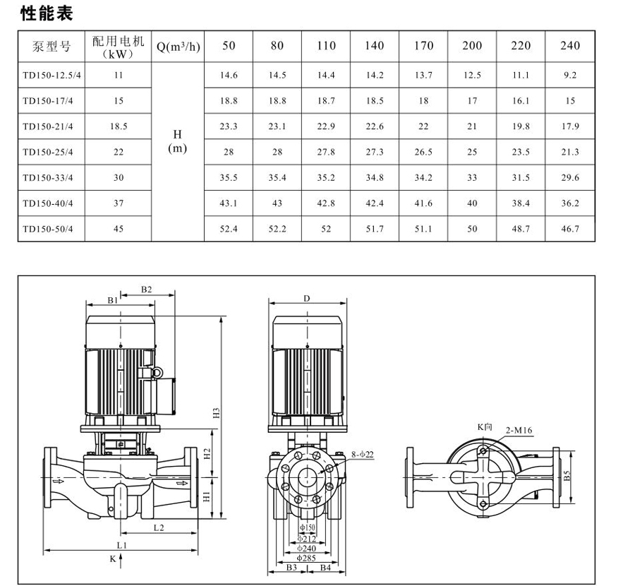 TD150系列單級管道離心泵,配有標(biāo)準(zhǔn)電機(jī)和機(jī)械密封。此類產(chǎn)品的結(jié)構(gòu)與相近類型產(chǎn)品相比,更不易受到泵送液體中雜質(zhì)的影響。產(chǎn)品設(shè)計為頂部可拉出的拆裝形式,其可以在不影響管路系統(tǒng)的情況下對泵進(jìn)行維修。所有泵采用創(chuàng)新式便拆式機(jī)械密封,更好機(jī)械密封無需拆卸電機(jī)。